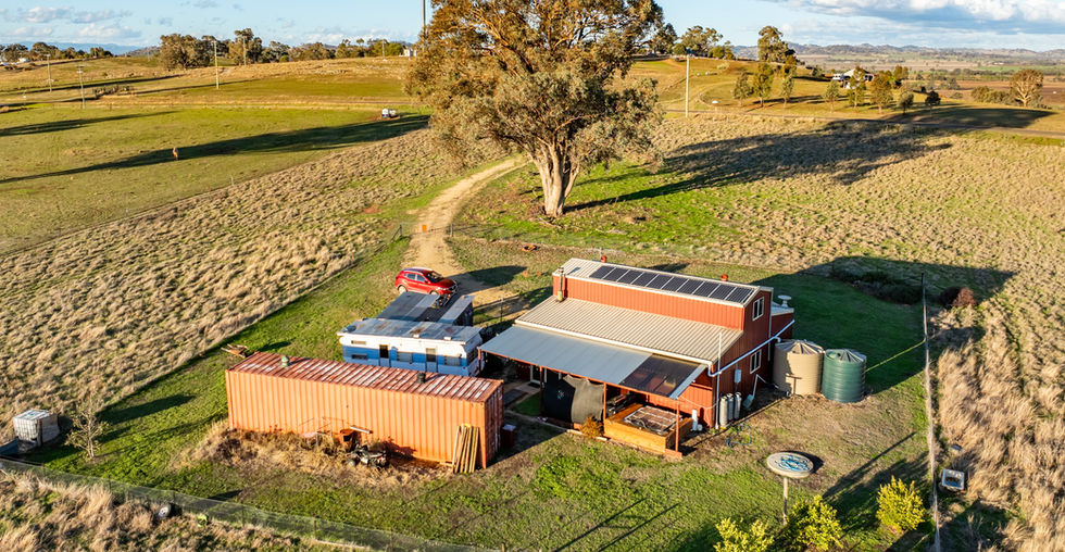 • Colourbond shed house with open-plan living and two upstairs bedrooms